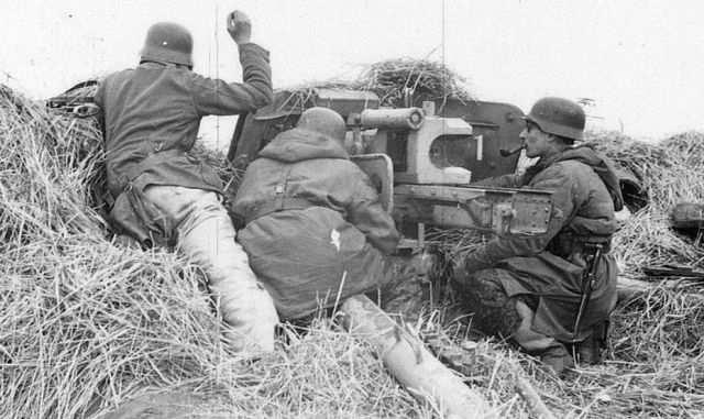 Расчёт противотанкового орудия фламандской штурмовой бригады СС «Лангемарк».