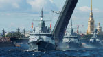 Малый ракетный корабль "Мытищи" (на первом плане) во время Главного военно-морского парада по случаю Дня Военно-морского флота РФ в акватории Невы в Санкт-Петербург, 2020 год.