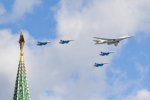 В Москве прошла тренировка участников авиационной части Парада Победы 9 Мая. В небе над Красной площадью в праздничном строю пролетели 23 вертолета и 53 самолета различных типов. Их количество равнялось числу лет, минувших с победного мая 45-го.
