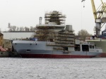 Головной строящийся для ВМФ России на АО "Адмиралтейские верфи" многофункциональный патрульный корабль ледового класса "Иван Папанин" проекта 23550. Санкт-Петербург, 03.05.2021.