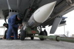 Установка ракеты "воздух-воздух" на перехватчик МиГ-31.
