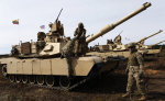 Американские военные на танке M1A2 Abrams во время учений в Пабраде, Литва.
