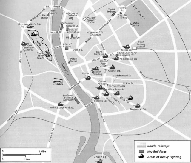 Карта боевых действий в октябре-ноябре 1956 года. Источник: Ervin Schmidl. The Hungarian Revolution 1956. — Osprey Publishing, 2006.