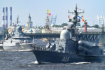 Главный военно-морской парад проходит сегодня в Санкт-Петербурге, в акватории Финского залива и Невы, в честь 325-летия российского флота.