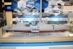 Модель фрегата проекта 11356 с демонстрацией машинного отделения в экспозиции индийской государственной судостроительной компании Goa Shipyard Limited (GSL) на выставке Euronaval 2018 в Ле Бурже (Франция), октябрь 2018 года.