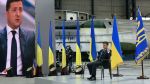 Президент Украины Владимир Зеленский во время пресс-конференции по итогам двух лет пребывания в должности главы государства на территории авиационного завода "Антонов".