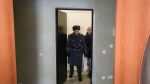 Новоселы заходят в свою новую квартиру после церемонии торжественной передачи служебного жилья военнослужащим войсковой части.