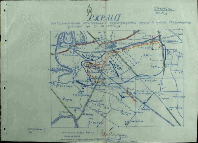 Схема боевых порядков 409-й стрелковой дивизии на 21 октября 1944 года.