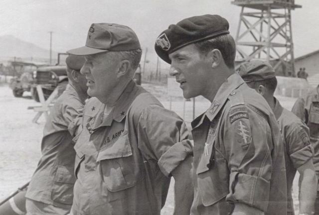 Капитан «Зелёных беретов» Дэвид Карр и генерал Дон Блэкбёрн в феврале 1970 года. На плече у Карра хорошо видно общую эмблему сил специальных операций.