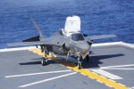 Истребитель пятого поколения с укороченным взлетом и вертикальной посадкой Lockheed Martin F-35B Lightning II из состава 242-й истребительно-штурмовой эскадрильи (VMFA-242) авиации морской пехоты США на полетной палубе японского авианесущего корабля DDH 183 Izumo. 03.10.2021.