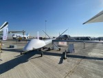Макет беспилотного летательного аппарата большой продолжительности полета "Орион-Э" разработки АО "Кронштадт" в варианте с оснащением со спутниковой системой связи в экспозиции международного авиасалона Dubai Airshow 2021. Дубай (ОАЭ), 14.11.2021.