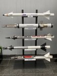 Ракеты британских переносных зенитных ракетных комплексов в экспозиции музея Thales Air Defense в Белфасте, сентябрь 2021 года. Снизу вверх: Blowpipe, Javelin, Starburst, Starstreak, LMM (Martlet) (c) Graham Taylor.