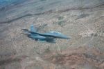 Истребитель ВВС США F-16 заходит на посадку на авиабазе Холломен в штате Нью-Мексико, США.