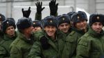 Мужчины, призванные на военную службу в ходе частичной мобилизации, на улице вблизи Новосибирского высшего военно-командного училища.
