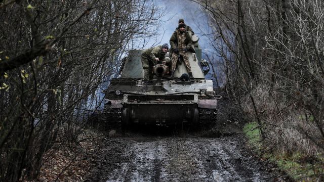 Самоходная артиллерийская установка 2С3 "Акация" перед работой по позициям ВСУ на Запорожском направлении.