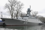Малый ракетный корабль "Град" (заводской номер 640) проекта 21631 (шифр "Буян-М"), построенный на АО "Зеленодольский завод имени А.М. Горького", на церемонии подъема Военно-морского флага Российской Федерации. Балтийск, 29.12.2022.