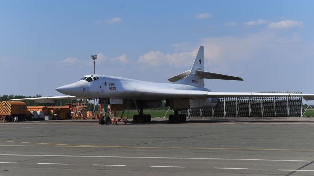 Бомбардировщик Ту-160 на площадке осмотра авиационной техники. Архивное фото.