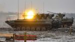 Бронированные самоходные машины БРМ-1К на гусеничном ходу в зоне проведения спецоперации.