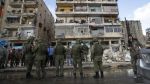 Российские военные возле разрушенного в результате землетрясения жилого дома в Алеппо, Сирия.