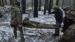 Медики транспортируют раненного украинского военного в районе Артемовска.