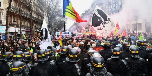 Акция протеста в Париже против пенсионной реформы.