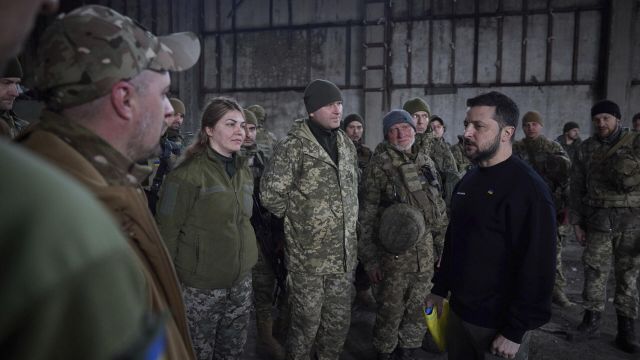 Фотография встречи президента Украины Владимира Зеленского с военнослужащими в Артемовске.