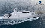 Модель большого ракетного катера проекта FAC 50 турецкой судостроительной компании Dearsan Shipyard для ВМС Катара в экспозиции международной военно-морской выставки Doha International Maritime Defence Exhibition (DIMDEX-2024). Доха (Катар), март 2024 года.