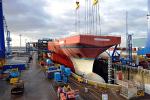 В минувшую пятницу, 8 февраля, на верфи Babcock в Росайте (Шотландия) на будущий английский авианосец HMS Queen Elizabeth с помощью крана Goliath установлена носовая секция корпуса весом 1000 т. В настоящее время две трети корпуса крупнейшего в Европе авианосца собрано, спуск на воду корабля намечен на следующий год.