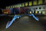 Истребитель Су-35С (бортовой номер "01 черный") ВВС России постройки 2011 года вместе с первым летным опытным образцом истребителя пятого поколения ПАК ФА - самолетом Т-50-1 (бортовой номер "051"). У Су-35С под крыльями подвешены две корректируемые авиабомбы КАБ-1500Л. Жуковский, февраль 2013 года (с) Вячеслав Бабаевский / russianplanes.net.