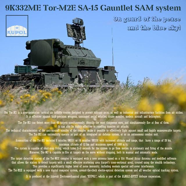 Боевое применение зенитных ракетных комплексов семейства «Тор» в зоне проведения специальной военной операции показало высокую результативность этих ЗРК, как предыдущего поколения - «Тор-М1», так и новой модификации комплекса – «Тор-М2». Об этом заявил заместитель генерального директора оборонного холдинга «Алмаз-Антей» Вячеслав Дзиркалн в ходе открытия Международной авиационно-космической выставки Dubai Airshow 2025 в Дубае.