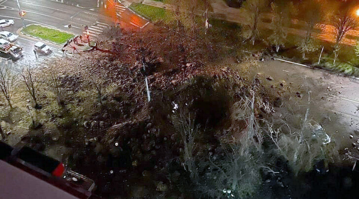 Бомба взорвалась под землёй. В Белгороде такое было.Ну вероятно так задумано было - замедление для пробития крыши дома и уже где-то внутри взрыв для наибольшего ущерба. Вот только есть нюанс - промазали мимо дома. Но, в любом случае, довольно занятно выглядит, что огромная воронка и совсем рядом даже стёкла не все вылетели в доме. Но в Белгороде, по-моему, разрушений больше, хотя воронка меньше, а дома дальше.