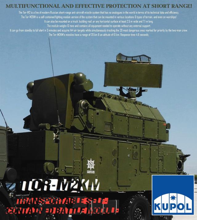 Зенитный ракетный комплекс «Тор-М2КМ» производится на Ижевском электромеханическом заводе «Купол» (входит в состав Концерна ВКО «Алмаз-Антей»), и является одним из наиболее эффективных комплексов ПВО ближнего действия.