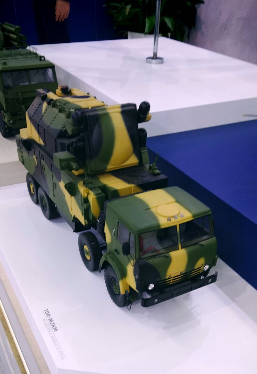 Для восточно-европейской аудитории ЗРК «Тор-М2КМ» был представлен в виде модели на колесной базе.