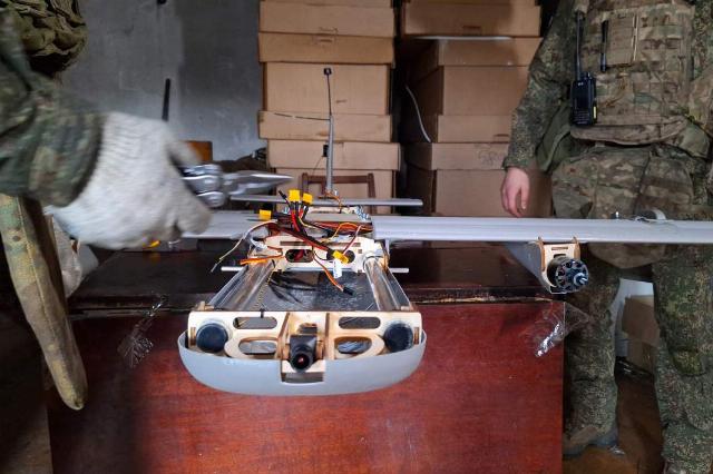 На импровизированном столе в пункте подготовки кипит работа. «Молнии-2» поступают сюда в виде компактных блоков. На наших глазах за считаные минуты разрозненные детали превращаются в изящный планер. Пока один боец соединяет крылья с фюзеляжем, техник Махсадбек Худобердиев склонился над ноутбуком — устанавливает программное обеспечение.